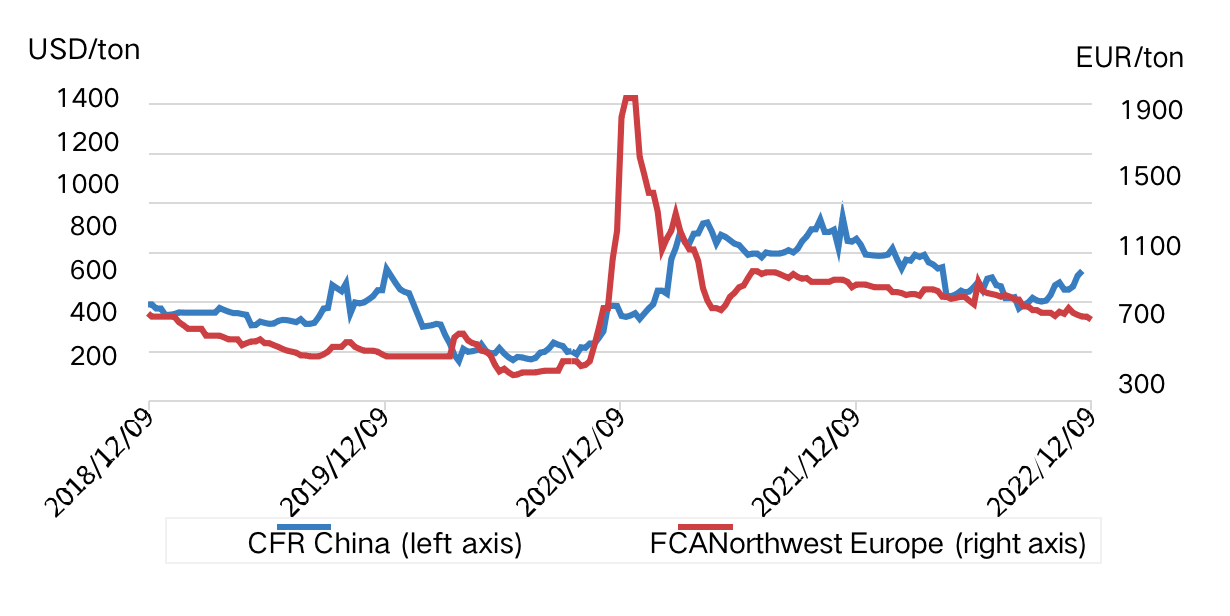 FCA Nordwesteuropa | 745 | 730 | -15 | Euro/Tonne |