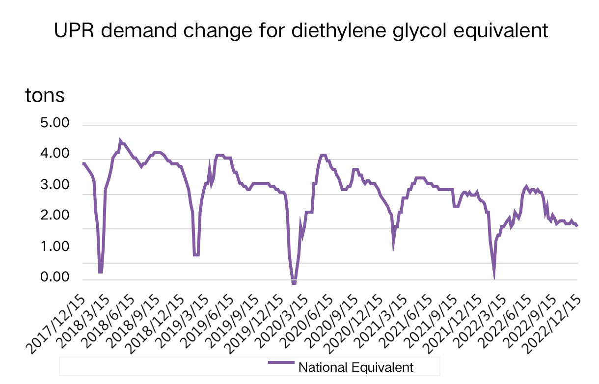 Figur 5 Änderungen der Nachfrage nach Diethylenglykoläquivalent in stromabwärts UPR