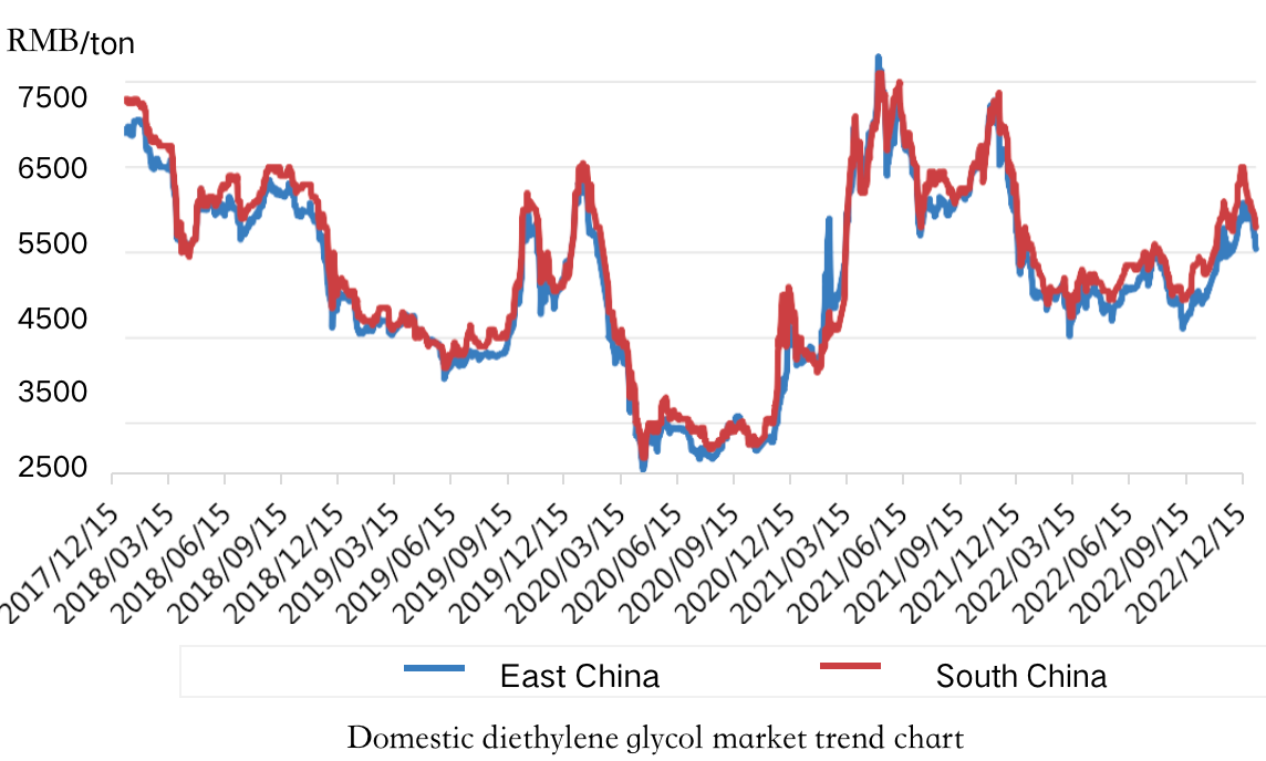 Yuan/Tonne, nach unten 320 Yuan/Tonne von letzter Woche.Am vergangenen Wochenende wurden die Verschiffungen im Hafen konzentriert und die Lagerbestände deutlich erhöht.Gleichzeitig sank der internationale Rohölpreis weiter, der Druck auf die aufgelaufenen Lagerstätten und die Kostenunterstützung schwächten sich ab.Der Markt für Diethylenglykol schwankte und ging zurück .Es kommen nur wenige Ladungen im Hafen an, und der Bestand ist gesunken.Stand Donnerstag war der Bestand in den beiden Lagern 24.950 Tonnen.Nachfrageseite, Obwohl die jüngsten Maßnahmen zur Prävention und Bekämpfung von Epidemien im Inland gelockert wurden, ist die Leistung der Nachfrageseite nicht gut.Die wichtigsten nachgelagerten Fabriken für ungesättigte Harze arbeiten weiterhin auf niedrigem Niveau.Ende des Jahres werden die Fabriken nach und nach in den Urlaub fahren und den gerade benötigten Einkauf aufrechterhalten.Es ist schwierig, zu viel Unterstützung auf der Nachfrageseite zu haben.Insgesamt hat der Druck auf der Angebotsseite von Diethylenglykol zugenommen, während die Breite des Rohöls schwankte, die Unterstützung auf der Kostenseite begrenzt ist und dem Markt eine solide positive Unterstützung fehlt.Es wird erwartet, dass es kurzfristig beibehalten wird.Da wir schwach und volatil sind, werden wir in der späteren Periode weiterhin auf Änderungen des Hafenbestands achten.