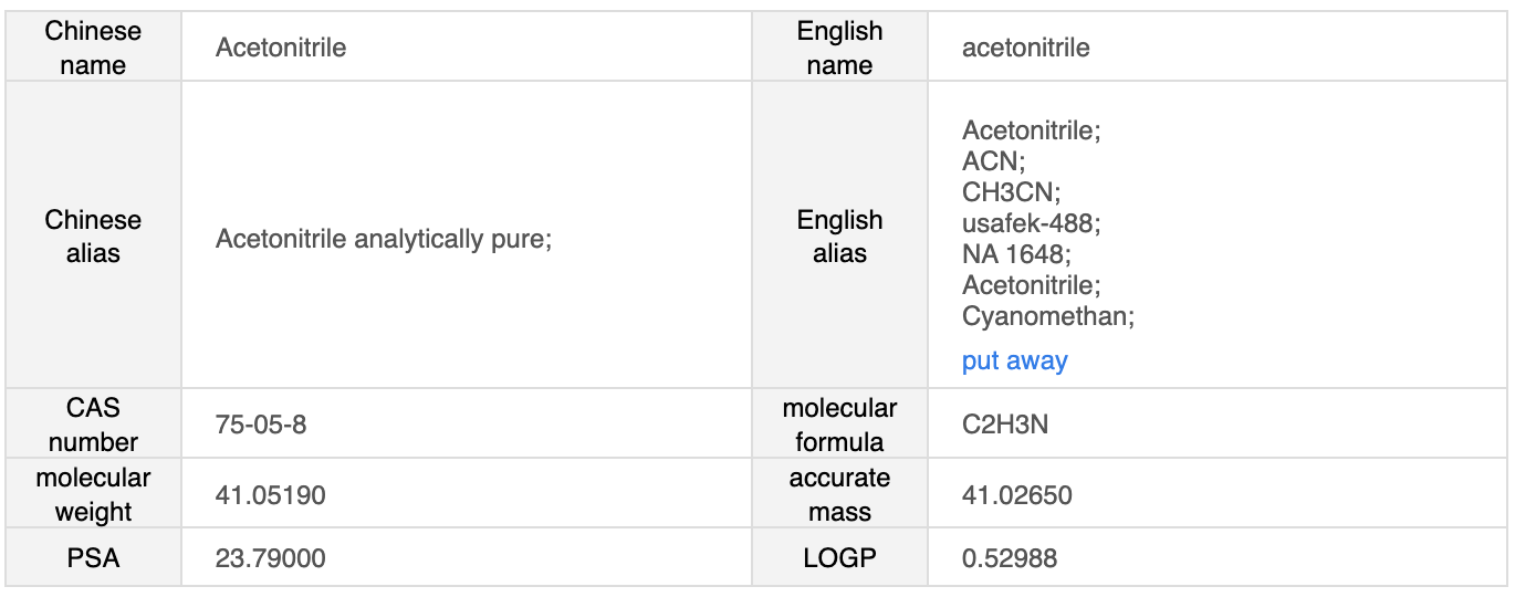 Acetonitril, eine organische Verbindung mit der chemischen Formel CH3CN oder c2h3n [3], ist eine farblose transparente Flüssigkeit mit ausgezeichneter Lösungsmittelleistung.Es kann eine Vielzahl organischer, anorganischer und gasförmiger Substanzen lösen und ist mit Wasser und Alkohol unbegrenzt mischbar.Acetonitril ist ein wichtiges organisches Zwischenprodukt, das typische Nitrilreaktionen eingehen kann und zur Herstellung vieler typischer stickstoffhaltiger Verbindungen verwendet wird.